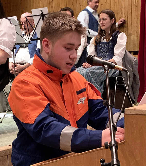 Mit besonderer Spannung verfolgten die Anwesenden Daniel Grads (Bild) Jahresbericht der Jugendfeuerwehr mit ihren 52 Aktiven. Herausragende Leistung war die Pflanzung von 700 Bäumen auf dem Haidgauer Berg innerhalb von nur fünf Stunden. Ein tolles Beispiel für Einsätze im Bereich der Nachhaltigkeit im Interesse künftiger Generationen. Das Motto war: „Hier wächst Zukunft.“