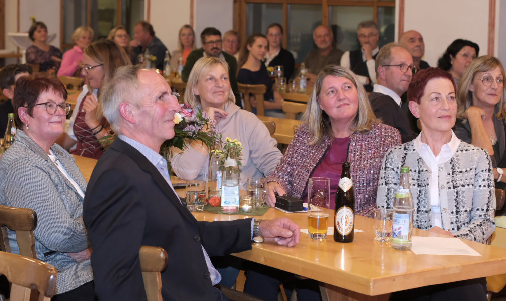 Der 69-jährige Alfons Reichle selbst sagte in seiner Dankesrede: „Man wusste ja nicht, was auf einen zukam, aber die Ortschaft war gut aufgestellt. Mein Vorgänger Alfred Wirth half mit guten Tipps und ich hatte viele Helfer.“ Er habe sich auf das stets gute Verhältnis mit zu Ortschaftsräten stützen können. Das ließ sie auch gemeinsam kitzlige Situationen wie das OGI-Fiasko überstehen. Reichle dankte der Bürgermeisterin und ihren beiden Vorgängern, die jederzeit erreichbar waren. Ein besonderer Dank ging an den Bauhof und an den Gemeinderat. „Unsere Vereine sind mir sehr ans Herz gewachsen.“ Besonders nannte er die Feuerwehr, die Tag und Nacht einsatzbereit sei und nun ihr neues Fahrzeug bekommen hat. Und den Kirchenchor und die Musikkapelle für die vielen schönen gemeinsamen Stunden. Ein besonderer Dank ging auch an die Kirche, vertreten durch Pfarrer Patrick Meschenmoser. Durch Grundstückabtretungen seitens der Kirche seien Projekte wie der Radweg und die barrierefreie Bushaltestelle erst möglich geworden. Ein ganz besonderer Dank ging an den ehemaligen Hausmeister Charlie Glaser, der ehrenamtlich die Wände des Dorfstadels gestrichen hatte, so dass er nun in neuem Glanz erstrahlen konnte. Alfons Reichle vergaß auch nicht, seiner „rechten Hand“ Doris Grimm zu danken, die in allen Vereinen der Ortschaft sehr verwurzelt ist. Zu guter Letzt zeigte er sich auch seiner Familie zu großem Dank verpflichtet, die auf dem Hof dafür sorgte, dass alles weiterlief, wenn er auswärtige Verpflichtungen hatte.
