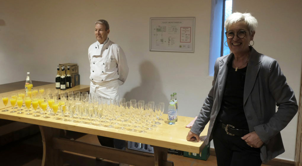 Mit einem Sektempfang wurden die rund 100 geladenen Gäste willkommen geheißen. Darunter waren die ehemaligen Ortsvorsteher Alfred Wirth und Franz Ritscher aus Haidgau, Franz Kraus aus Unterschwarzach, Karl Mayer aus Gospoldshofen, der auch als früherer Bauhofleiter in den 25 Jahren viele Berührungspunkte mit Reichle hatte. Aber auch die ehemaligen Amtsleiter Gottfried Bachmor (Stadtbauamt), Peter Depfenhart (Kämmerei) und Alfons Diem (Kur- und Hauptamt) ließen es sich nicht nehmen, bei der Verabschiedung dabei zu sein.Auch die aktuelle Ortsvorsteherriege war fast vollzählig vertreten, um gemeinsam mit Bürgermeisterin Alexandra Scherer, Kämmerer Stefan Kunz und der aktuellen Ortsvorsteherin Sybille Schleweck Alfons Reichle ein würdiges Abschiedsfest zu bereiten.
