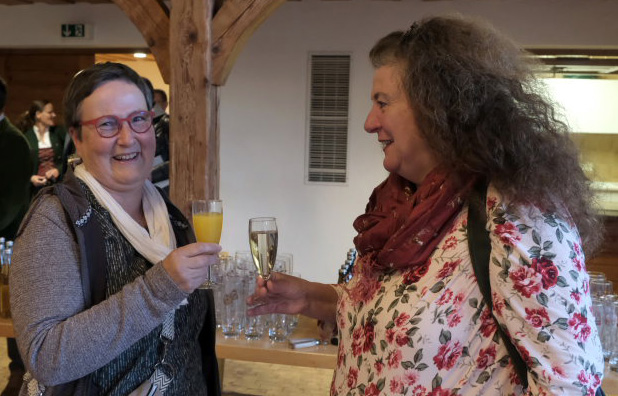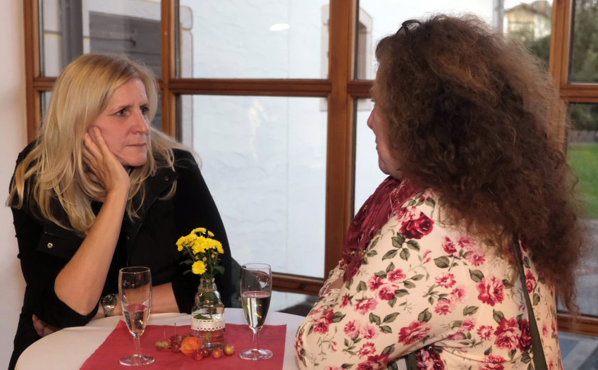Yvonne Schudeja, Leiterin der Grundschule Haid, im Gespräch mit Ernestina Frick.