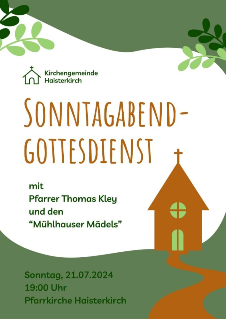 Haisterkirch – Am kommenden Sonntag, 21. Juli, um 19.00 Uhr findet in Haisterkirch wieder ein Sonntagabendgottesdienst statt. Zelebrant ist Thomas Kley, Vikar in Göppingen. Thomas Kley ist in Unterschwarzach aufgewachsen und dürfte hier viele „alte Bekannte“ haben. Die musikalische Gestaltung übernimmt eine Gruppe junger Frauen aus Mühlhausen.