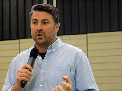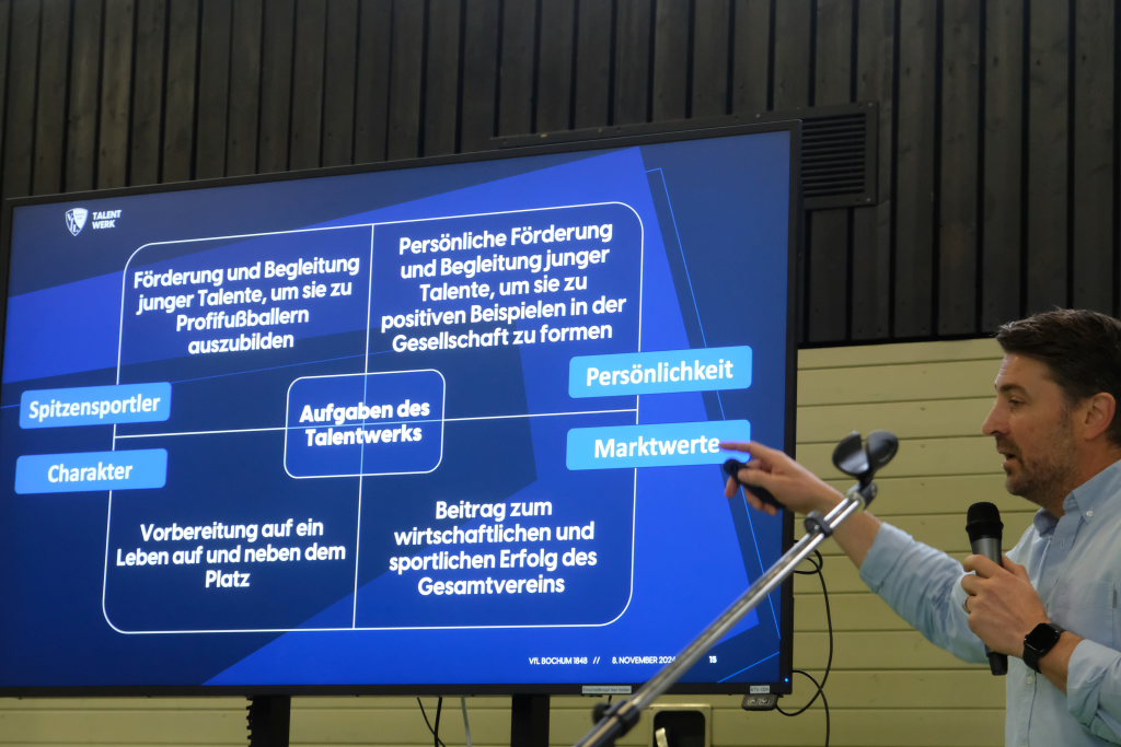 Im dritten Teil seines Vortrages ging er auf die Frage „Traumberuf Fußballprofi?“ ein und seine Arbeit als Leiter des vereinseigenen Ausbildungszentrums Talentwerk. Sein Karrierefazit lautet: „Für mich hat es sich gelohnt, noch mit 25 Jahren Profi zu werden und dafür auf vieles zu verzichten und oft noch mehr zu trainieren. Er habe seinen Traum, damit viel Geld zu verdienen verwirklichen können. Aber: In Deutschland gibt es 2,3 Millionen aktive Spieler. Davon spielen allerdings nur 1500 in den Profiligen 1., 2. und 3. Bundesliga. Wer also nach oben kommen will, muss sehr viel Talent, aber auch sehr viel Bereitschaft haben, mehr zu tun und auf vieles zu verzichten.
