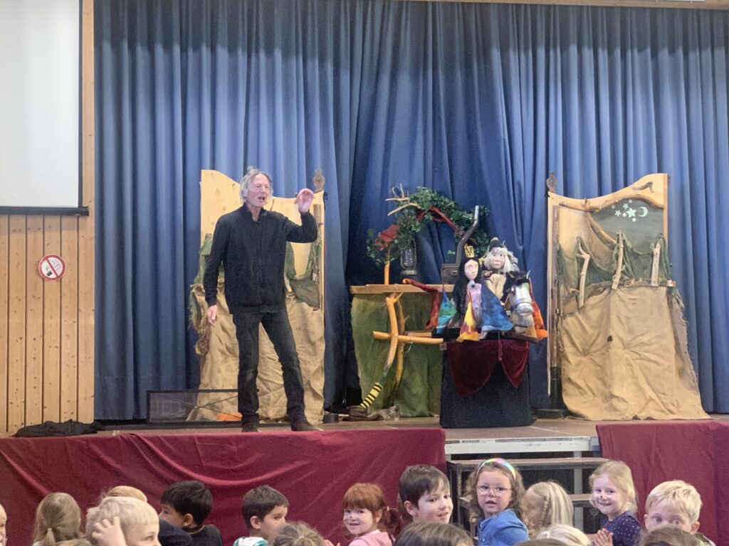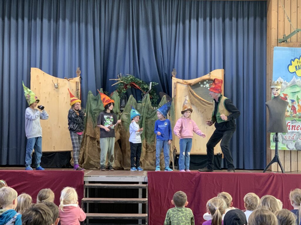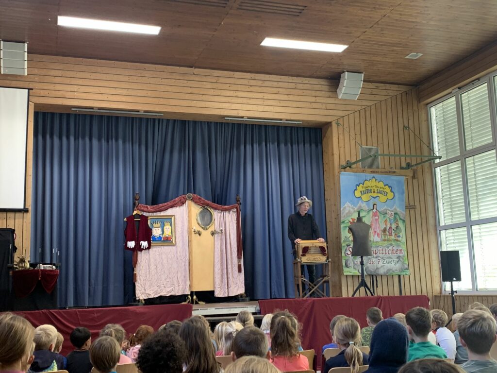 So kam in diesem Jahr das Figurentheater Kauter und Sauter nach Arnach und spielte das Märchen „Schneewittchen und die 7 Zwerge“ als Mitmachtheater vor. Die Kinder aus dem Kindergarten und aus der Grundschule hatten große Freude daran, das bekannte Märchen der Brüder Grimm auf so beeindruckende Art und Weise erleben zu dürfen und so aktiv daran mitwirken zu können. Dabei überzeugten Leon Schmunk als Jäger und sieben Kinder vom Kindergarten bis zur vierten Klasse als Zwerge ganz besonders. Der Förderverein Bildungshaus Arnach e.V. übernahm dankenswerterweise die Kosten, die für das Mitmachtheater angefallen sind.