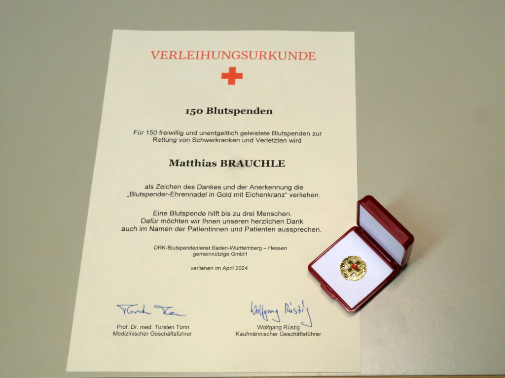 Weit vor allen liegt Matthias Brauchle, der sich schon 150 mal mit einer Spende seines wichtigsten Lebensaftes um die Gesundheit seiner Mitmenschen verdient gemacht hat.
