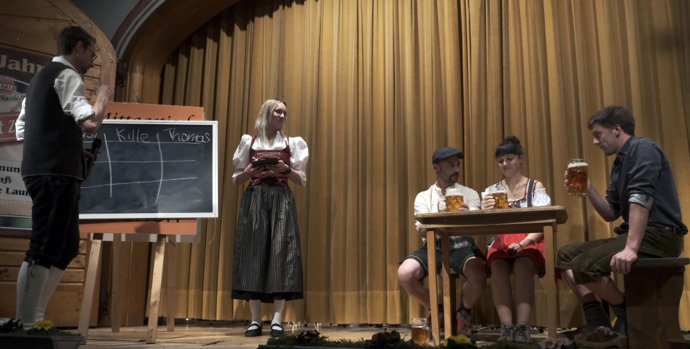 In dem Sketch „Altbairisch für bayerische (Sprach-) Anfänger“ nahmen die Akteure so manchen bayerischen Kraftausdruck in den Mund, um sich danach aber Mitleid erheischend von der Ehefrau wie bei einer Männergrippe umsorgen zu lassen. Um dann wundersam schnell wieder zu genesen, wenn ein Kumpel zum Schafkopfen einlädt. Susi Pfänder, Lisa Brechter, Oswin Butscher und Hubert Forderer wiesen dabei ihre schauspielerischen und „dialektischen“ Talente nach.