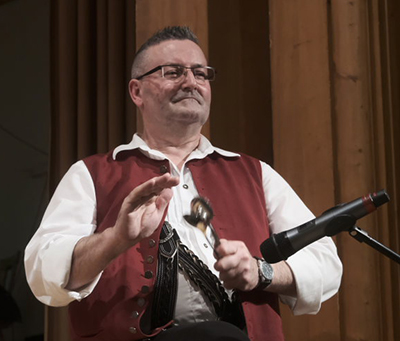 Musik-Vorstand Freddy Holzmüller griff bei einigen Liedern selbstverständlich selbst zum Mikrofon und führte auch souverän durch das Show- und Musikprogramm. Und wenn er mal nicht sang, sorgte er wie bei der Löffelpolka (Bild) anderweitig für den richtigen Ton.