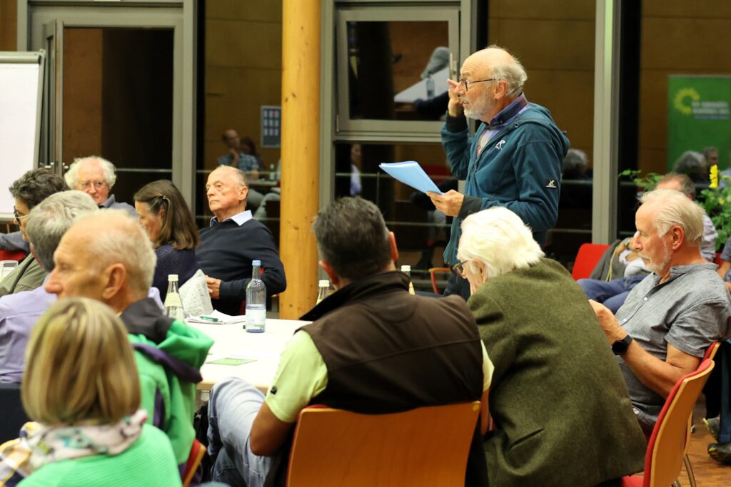 „Mit den Windkraftanlagen laufen wir in eine flächendeckende Industrialisierung“, klagte Wolfgang Hübner und Reinhold Mall bedauert die Verschandelung der Landschaft und den mangelnden Natur- und Vogelschutz. Der Kurbetrieb würde Schaden nehmen. Aber Dr. Walz sieht ein klimaneutrales Bad Waldsee als eine positives zukünftiges Alleinstellungsmerkmal. Die Diskussion geriet darüber in emotional aufgewühlte Fahrwasser. Für Wolfgang Hübner ist die Energiepolitik der Landesregierung nicht zielführend, der Bürger werde bei den Angaben zum Flächenbedarf für Windkraft und Freiflächen-PV getäuscht. Ein Vertreter aus Vogt sprach wörtlich von „Märchen“. Hübner beklagte zudem die Form der Aussprache, das sei keine demokratische Diskussion, sondern gelenkt. Die lebhaft und emotional geführte Diskussion im Plenum endet um 21.45 Uhr, wie von den Veranstaltern vorgegeben. In kleinen Runden gingen die Diskussionen noch weiter.
