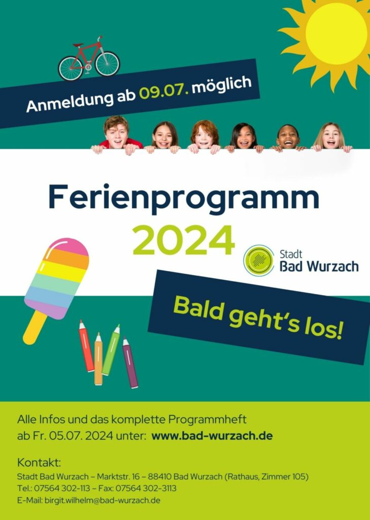 Bad Wurzach – Das diesjährige Ferienprogramm von Bad Wurzach steht! Das umfangreiche Programm verspricht erlebnisreiche Sommerferien vom 25. Juli bis 25. August sowohl für Kleinkinder als auch für