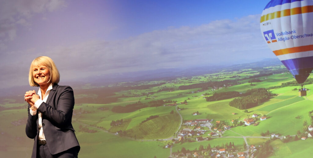 Leutkirch – Gundula Gause begeisterte die Besucher des VBAO-Mitgliederforums am vergangenen Mittwochabend (10.4.) in der Festhalle Leutkirch. 450 Mitglieder der Volksbank Allgäu-Oberschwaben hingen wie gebannt an ihren Lippen.