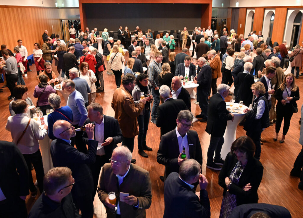 Mit guten Gesprächen an Stehtischen klang der Abend aus. Für Getränkennachschub sorgte die Narrenzunft Nibelgau. Foto: Erwin Linder