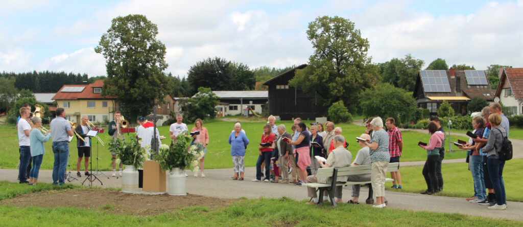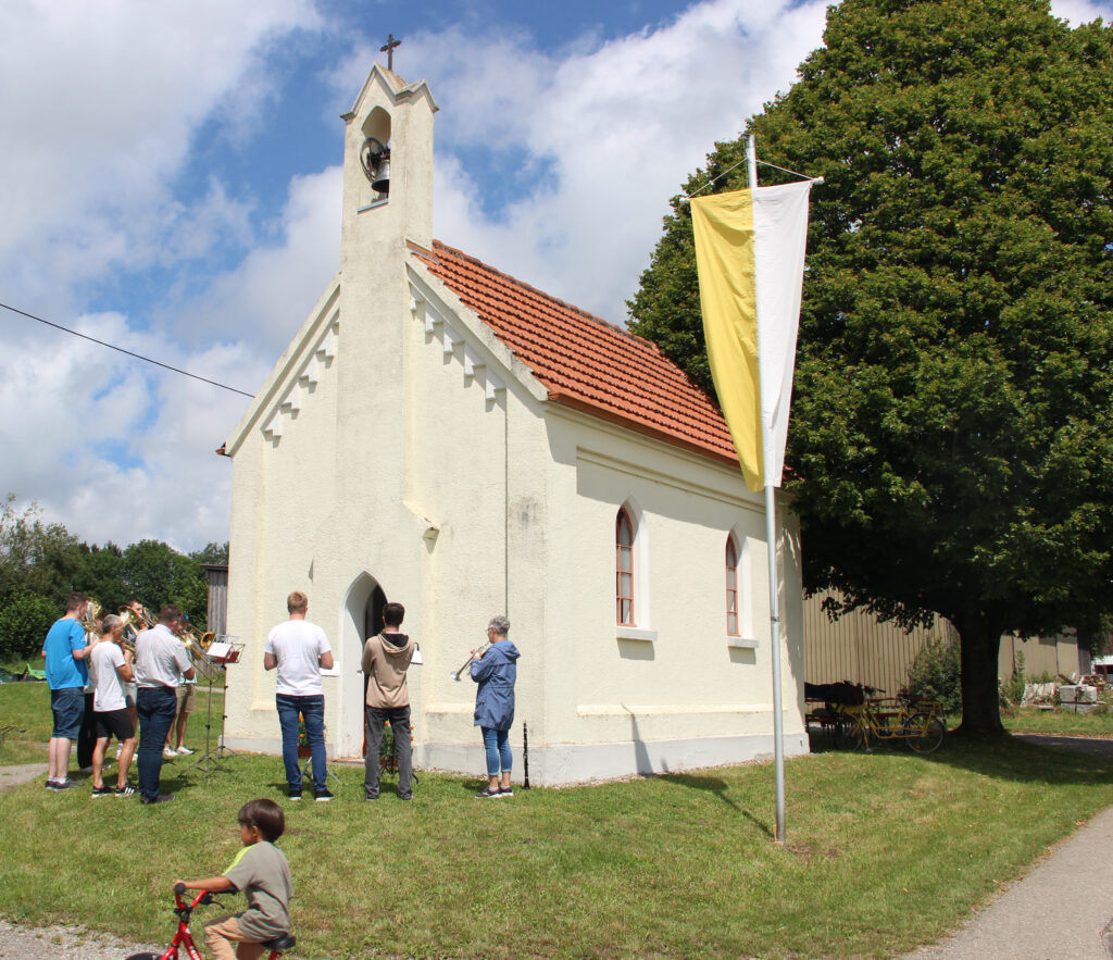 Bei der anschließenden „weltlichen Feier“ unter der schönen Kapellenlinde gab es eine gemütliche Kaffeerunde, die gegen Abend in ein Grillfest überging. Kapellenmesner Gebhard Baumann bedankte sich bei Pfarrer Patrick Meschenmoser für die würdevolle Feier und bei allen Beteiligten sowie beim Trio „S´Duranand“ (nachstehendes Bild), das unermüdlich aufspielte.