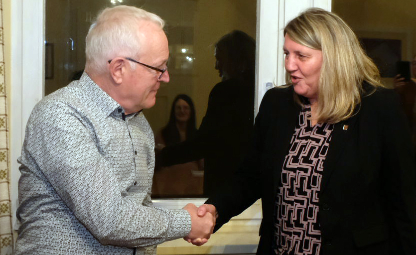 Manfred Braun gab die Blumen, die er von Ortsvorsteher Rauneker erhalten hatte, an seine Frau Luzia weiter. Foto: Uli Gresser