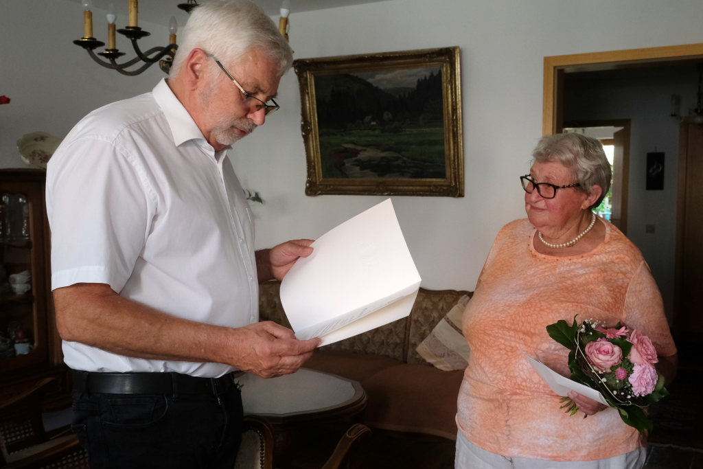 Warum die Feier mit ihren rund zwanzig Verwandten im Waldhorn stattfand? Maria Titze ist seit vielen Jahren mit dem Dietmannser Schreiner Riß befreundet, und der war es dann auch, der sie an ihrem Geburtstag beinahe aus dem Bett hätte hochschrecken lassen – wäre sie nicht eine große Frühaufsteherin. Denn dieser hatte ihr bereits morgens um 7.00 Uhr eine Tafel mit einer gekranzten 90 in ihrem Garten aufstellen lassen.