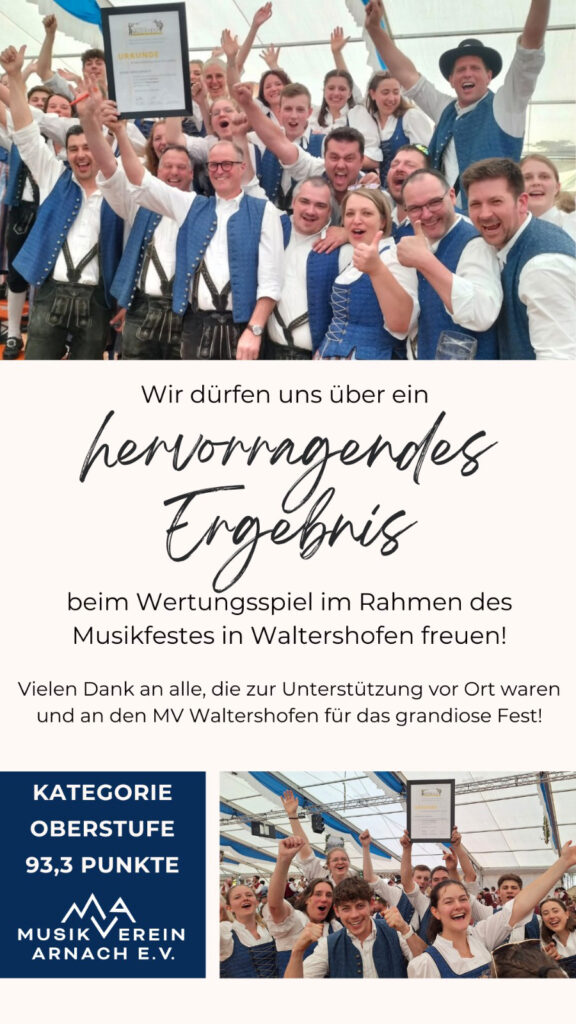 Waltershofen / Arnach – „Mit hervorragendem Erfolg“ in der Oberstufe abgeschnitten – darüber freut sich der Musikverein Arnach und mit ihm das ganze Dorf.