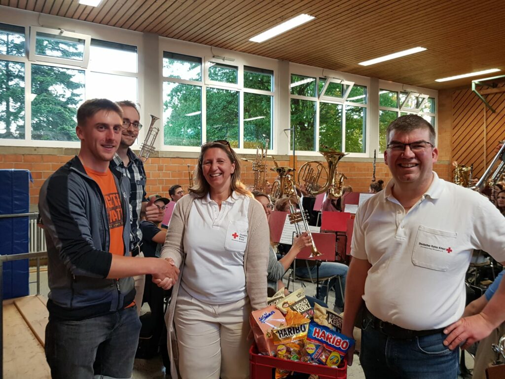 Im Rahmen der Generalprobe zum Wertungsspiel in Waltershofen übergaben die Bad Wurzacher Ortsvereinsvorsitzende Petra Greiner und der Beauftragte für Blutspendearbeit, Frank Fäßler, den Preis. Beim Wertungsspiel selbst hat die Musikkapelle Ziegelbach sich ein „Hervorragend“ (bestmögliche Bewertung) erspielt, somit war dies ein rundum gelungenes Wochenende.