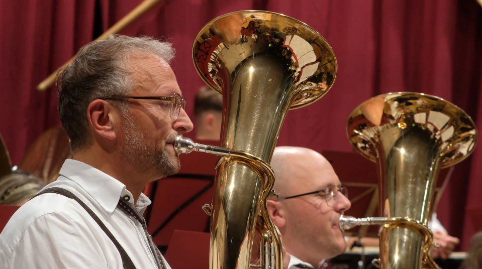 Mit der „Unity Fanfare“ des österreichischen Komponisten Otto M. Schwarz, eröffneten die Musiker ihr diesjähriges Programm, das sie in sechwöchiger Probenarbeit gemeinsam mit ihrem Dirigenten Alexander Dreher (Bild) einstudiert hatten. Das Konzertwerk aus dem Jahre 2010 ist ein Eröffnungswerk, das die Musiker sofort auf „Betriebstemperatur“ brachte und das Publikum in der vollbesetzten Halle sehr gut auf das Konzertprogramm einstimmte. Eine Fanfare zu Beginn, dann wechseln sich festliche Chöre sowie emotionale Melodien einander ab, bis es zum gemeinsamen Finale Furioso kommt.