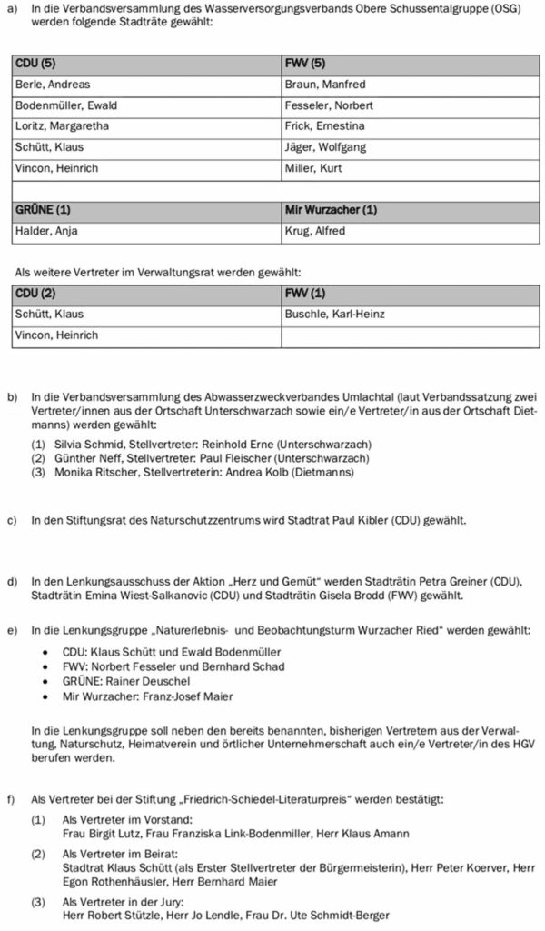 Vertreter des Gemeinderates in anderen Gremien. Aufstellung: Stadt