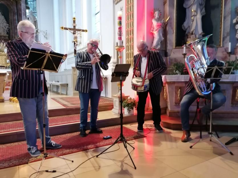 Das vorletzte Friedensgebet in diesem Jahr hatte Pastoralreferent Matthias Winstel von der katholischen Kirchengemeinde gestaltet. Und auch den englischen und französischen Besuch mit einbezogen. Pünktlich um 18.00 Uhr ließ Herr Winstel vor der St.-Verena-Kirche fünf Brieftauben steigen – als sinnreiches Symbol des Friedens. Um diesen wurde anschließend in der Kirche, teilweise zweisprachig, gebetet. Die Brass Souls begleiteten das Friedensgebet musikalisch. Danach gab es im Pius-Scheel-Haus für die Band eine gelungene Verabschiedung.