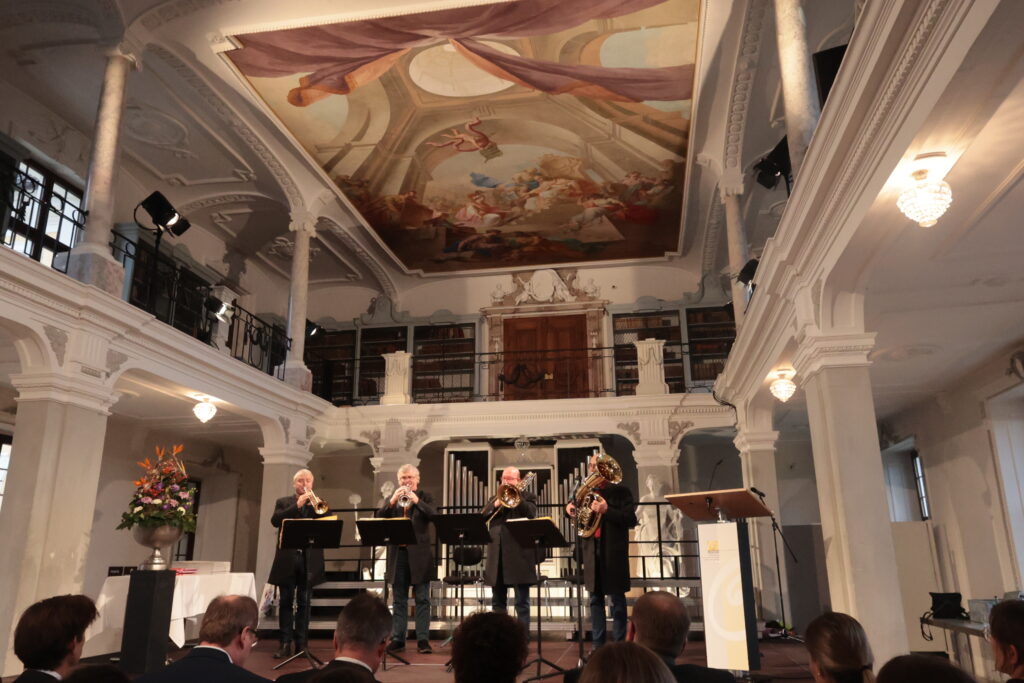 Das Blechbläser-Ensemble „HeiliXblechle“ umrahmte den Festakt musikalisch. Die Gruppe besteht aus Karlheinz Vetter, Eugen Maucher, Martin Räth und Barny Bitterwolf (von links).
