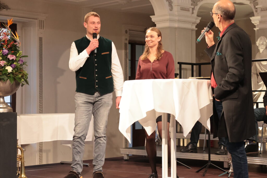 Die neuen landwirtschaftlichen Leistungsträger wurden in diesem Festakt von Abteilungspräsidentin Anita Schmitt vom Regierungspräsidium Tübingen begrüßt. Weitere Grußworte und gute Wünsche überbrachten Ochsenhausens Bürgermeister Philipp Bürkle und Biberachs Landrat Mario Glaser. Durch den anschließenden „Meistertalk“ führte Bernhard Bitterwolf. Eine Kostprobe daraus: „Was macht einen Bauern glücklich?“ Für Jungmeister Vinzenz Popp ganz klar: „Ein guter Melkstand und ein guter Kontostand!“