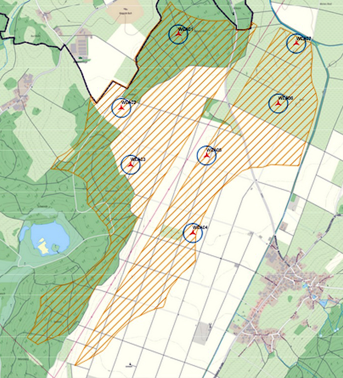 Schraffierte Fläche: in einem sensiblen Gebiet nördlich von Osterhofen will der NABU keine Windräder.