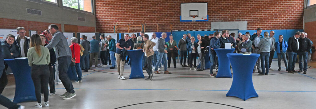 Es war eine ideologiefreie Veranstaltung. Kein Redner am Mikro und passive Zuschauer auf den Stühlen. Stattdessen offene Info-Stände mit kompetenten Gesprächspartnern, die bereitwillig Auskunft gaben. Die EnBW und die EnBW-Tochter Netze BW gingen auf alle Aspekte des im Bereich westlich von Haisterkirch / Osterhofen angedachten Windparks ein, informierten über Anlagentypen, Gesamthöhe der Anlagen (ca. 266 Meter), Schallemissionen, Schattenwurf usw.