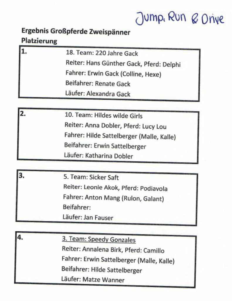 Vorstand Josef Dobler schloss auch die vielen freiwilligen Helfer in den öffentlichen Dank ein, ebenso wie die zahlreichen Sponsoren des Pferdesportfestivals. Dem Verein gelingt es immer wieder mit dieser Veranstaltung eine Vielzahl von Sportbegeisterten einzubinden. Die Teams sind aus jung und alt generationenübergreifend zusammengestellt, ebenso wie weiblich und männlich ausgewogen verteilt ist. Auch Nicht-Reiter konnten an diesem Sportabend teilnehmen.