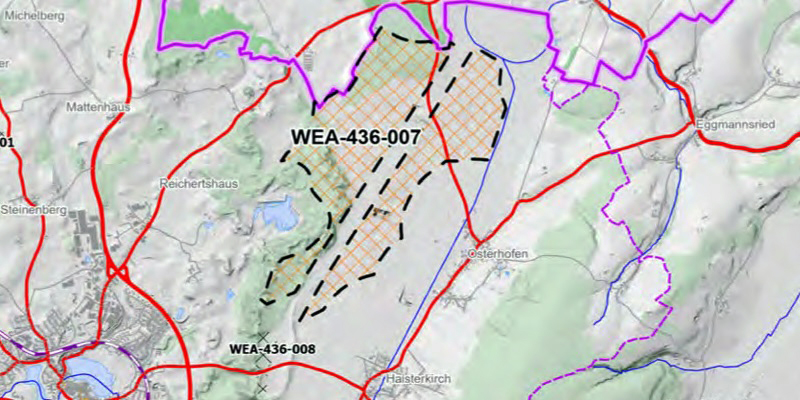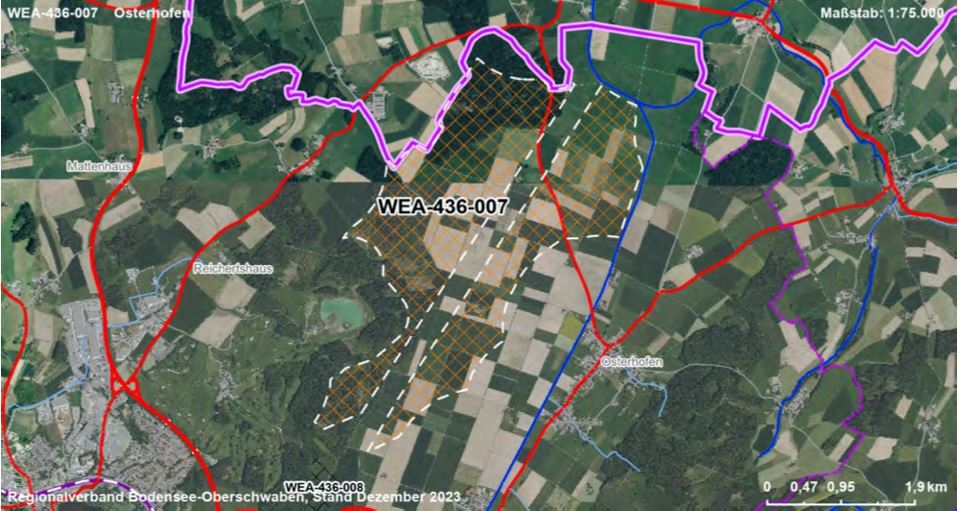 Das westlich von Osterhofen vom Regionalverband ausgewiesene Vorranggebiet WEA 436-007 hat eine Fläche von 375,5 Hektar und ist damit eines der größten Plangebiete Oberschwabens. Östlich des Haisterkircher Rückens liegt das Wurzacher Ried. Die bei Osterhofen geplanten WKA wären von Bad Wurzach aus sichtbar. Die beiden Karten sind der Homepage des Regionalverbandes Bodensee-Oberschwaben entnommen.