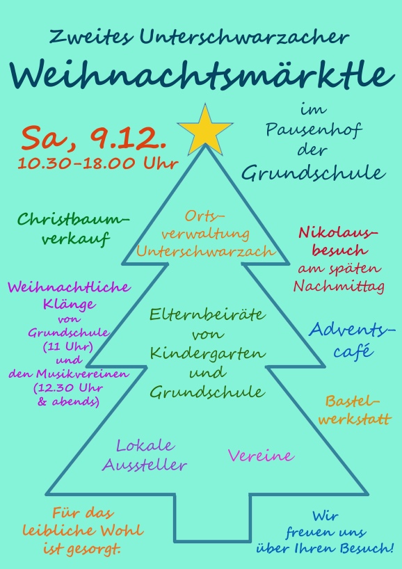 Unterschwarzach – Wie schon letztes Jahr findet das Unterschwarzacher Weihnachtsmärktle im Schulhof der Grundschule und den Räumen von Vereinen und Ortsverwaltung statt: Am 9. Dezember von 10.30 Uhr bis 18.00 Uhr.