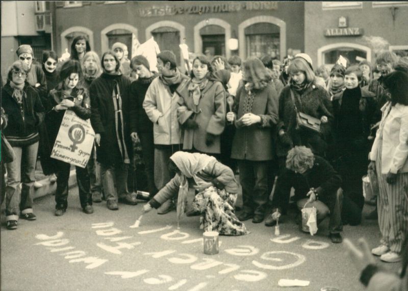 Ein Flugblatt, ein Plakat zur Walpurgisnacht sind private Sammlerstücke, die diese Ausstellung so authentisch machen. „Wir wehren uns gegen die Gewalttätigkeit der Männer“, liest man da in den „Südschwäbischen Nachrichten“, einer Zeitung der Basis, der Gegenöffentlichkeit, wie der „Motzer“, der 14-tägig in einer Auflage von 1900 Stück erschien. Die