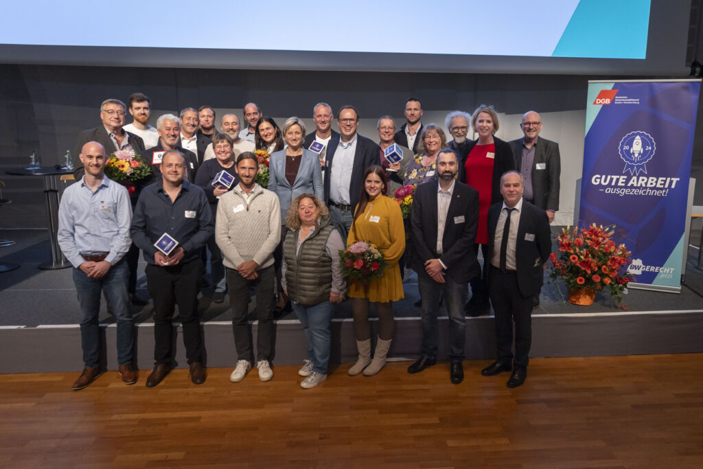 Zum vierten Mal hat der DGB Baden-Württemberg den Mitbestimmungspreis „Gute Arbeit – ausgezeichnet“ verliehen. Eine fünfköpfige Jury wählte aus den Bewerbungen fünf Gewinner aus. Freuen konnten sich der Betriebsrat der Albert Handtmann Metallgusswerk GmbH & Co. in Biberach für einen Zukunftstarifvertrag zur Sicherung des Produktionsstandortes, in dem der Betriebsrat mitentscheiden kann; der Betriebsrat der Klinik-Technik GmbH am Uni-Klinikum Heidelberg, der Tarifbindung erkämpft hat; der Personalrat des Klinikums Stuttgart für eine Dienstvereinbarung, die die Beschäftigten vor Überbelastung schützen soll; der Betriebsrat des Liebherr-Werks Biberach, der eine Vereinbarung ausgehandelt hat, die Kolleg:innen in Kurzarbeit zu qualifizieren; und eben der Betriebsrat der Erwin Hymer Group SE aus Bad Waldsee für die Regelung der Mitbestimmung auf europäischer Ebene. Der Preis ist undotiert und wird alle zwei Jahre verliehen.