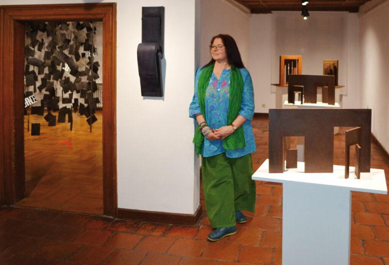 Schon seit einigen Jahren ist die in Allmannsweiler lebende Künstlerin in Oberschwaben aktiv. So kuratierte sie im Dezember 2019 die Gemeinschaftsausstellung Schwarz-Weiss im Kloster Schussenried und machte mit einer sehenswerten, begehbaren Installation – ein Blätterwald (Schwarzwald/Schwarzbuch) – auf sich aufmerksam. Und mit ihrer Einzelausstellung „Bücher + Türen = dasselbe“ exponiert sich die Künstlerin in ihrer Vielfältigkeit und zeigt ihren Weg auf.