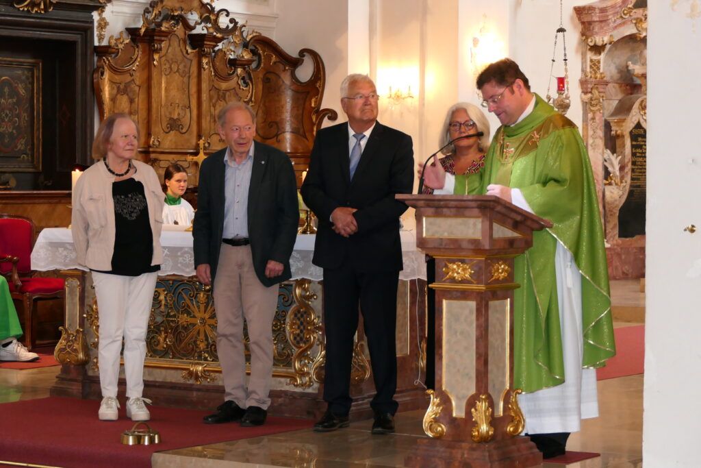 Wolfegg – Im Rahmen des Sonntagsgottesdienstes in Wolfegg am „Tag der Großeltern und Senioren“ am Sonntag, 28. Juli, hat Pfarrer Klaus Stegmaier die Verdienste von Manfred Müller und Franz Ott für die Kirchengemeinde St. Katharina Wolfegg und für die Seelsorgeeinheit Oberes Achtal gewürdigt.