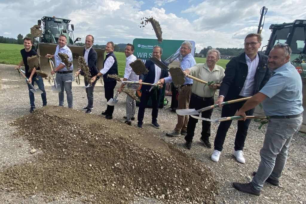 Friesenhofen – Das Bauunternehmen Max Wild aus Berkheim/Illertal baut in Friesenhofen einen neuen Standort. Mit rund 800 Quadratmetern Hallenfläche und 425 Quadratmetern Platz im Bürobereich birgt das neue Gebäude dann Platz für insgesamt 55 Beschäftigte. Das Ganze entsteht in Holz auf drei Stockwerken. Kostenpunkt: insgesamt rund 2,5 Millionen Euro. Auf dem begrünten Dach sollen Solarmodule in der Sonne glänzen. Deren Strom dient dann unter anderem für eine Wärmepumpe. Das Wort „Nachhaltigkeit“ ließ sich am Freitagvormittag (2.8.) am alten Bahngleis Friesenhofen öfter hören. Anlass: der Spatenstich für den neuen Standort.