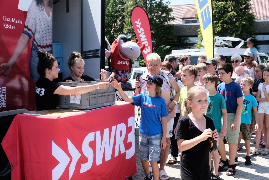 Bad Wurzach – Die Chance auf Gratis-Eis und Partystimmung zusammen mit SWR3-Moderatoren ließen sich in der Mittagspause am Dienstag, 30. Juli, zahlreiche Bad Wurzacher nicht entgehen. Dass der SWR3-Eistruck nach Bad Wurzach gekommen war, war möglicherweise auch der Bildschirmzeitung „Der Wurzacher“ zu verdanken. Denn wir vom „Wurzacher“ haben kräftig fürs Mitmachen bei der Online-Abstimmung getrommelt – nicht nur in Bad Wurzach, sondern in allen unseren Erscheinungsorten – also auch in unseren Ausgaben für Bad Waldsee, Leutkirch, Kißlegg und Aulendorf.