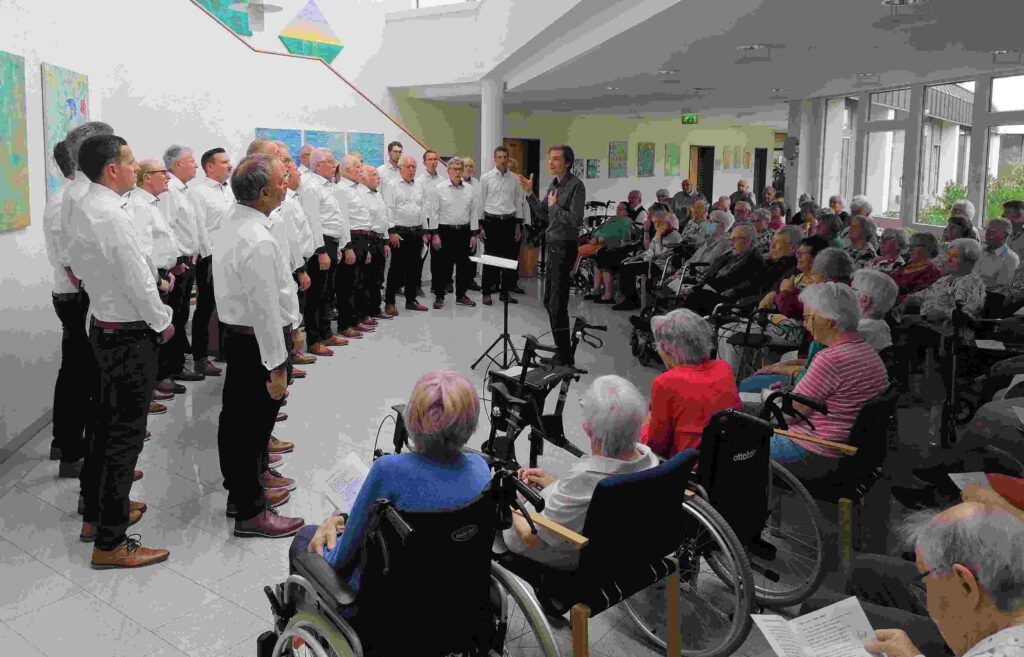 Bad Waldsee – Viel Freude haben die Sänger des Männerchors Haisterkirch ihrem Publikum im voll besetzten Foyer des Wohnparks am Schloss mit einem schwung- und gefühlvollen Serenaden-Konzert gemacht. Bewohnerinnen und Bewohner, Mitarbeitende und Gäste lauschten und applaudierten begeistert und sangen kräftig mit.