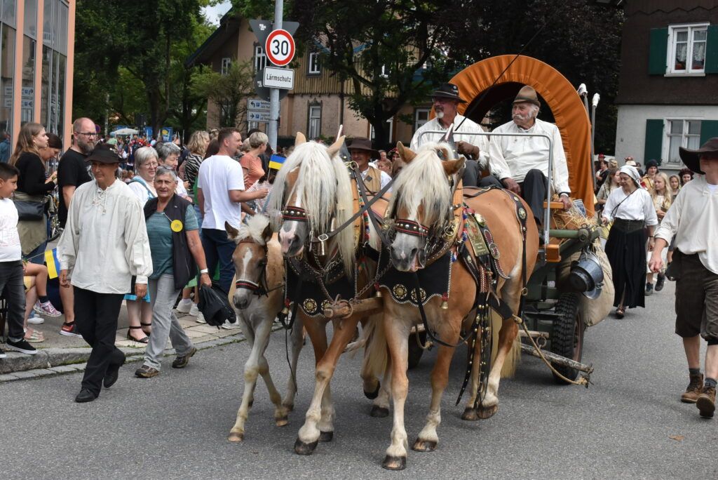 Leutkirch – Es war fast wie im Bilderbuch am heutigen Dienstagmorgen. Zuerst noch grauer Himmel, solange die Fest-Wagen gerichtet und geschmückt wurden, solange die Gruppen sich einkleideten, die Pferde eingespannt wurden. Pünktlich zum Umzug ließ sich die Sonne immer mehr blicken und alles leuchtete in den schönsten Farben.