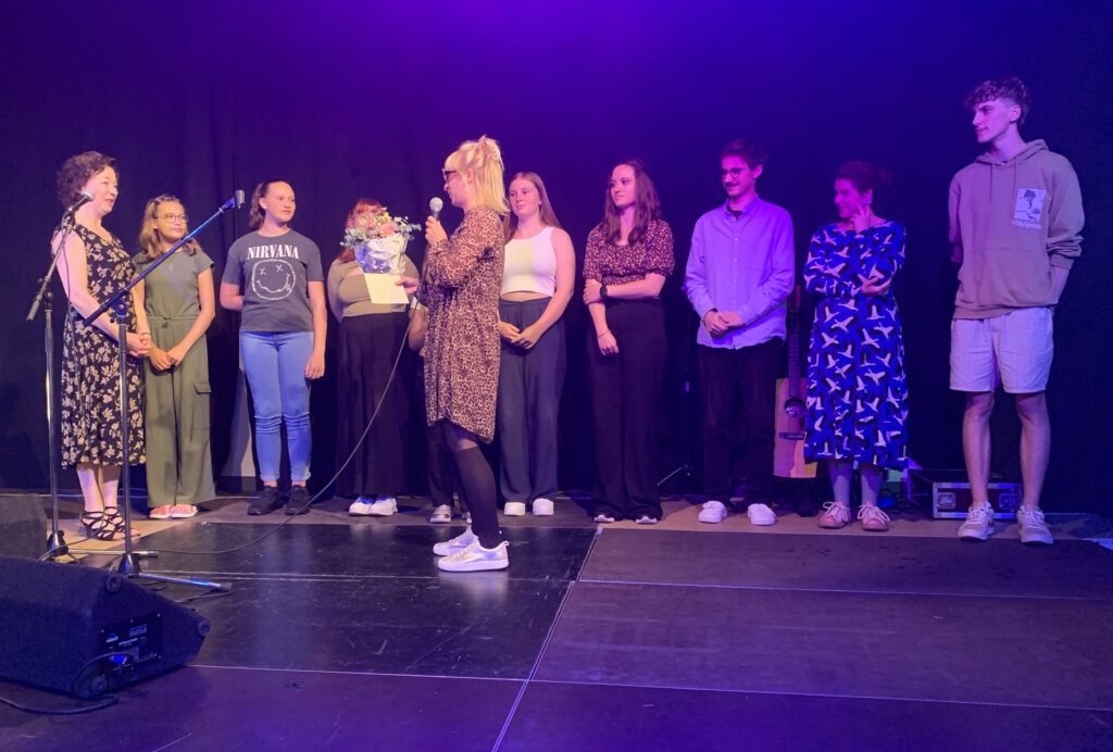 Bad Waldsee – Elena Becker-Schramms Schüler gaben auf ihrem Sommerkonzert am 5. Juli im Jugendhaus „Prisma“ feinste Kostproben des Erlernten. Acht Sängerinnen und zwei Sänger gestalteten das Konzertprogramm. Die bewährt-vorbildlichen Motivationskünste der Musikpädagogin, gemischt mit viel Probenfleiß, waren mal wieder entscheidende Bausteine für das halbjährlich stattfindende Konzert. Selbst das zeitgleiche Viertelfinale der Fußball-EM konnte die Besucherzahlen nicht schmälern, unter ihnen ein erklärter Fußball-Fan, Bürgermeisterin Monika Ludy. Am Ende des Konzerts äußerte sie sich sehr wertschätzend zu den gebotenen Leistungen aller Beteiligten.