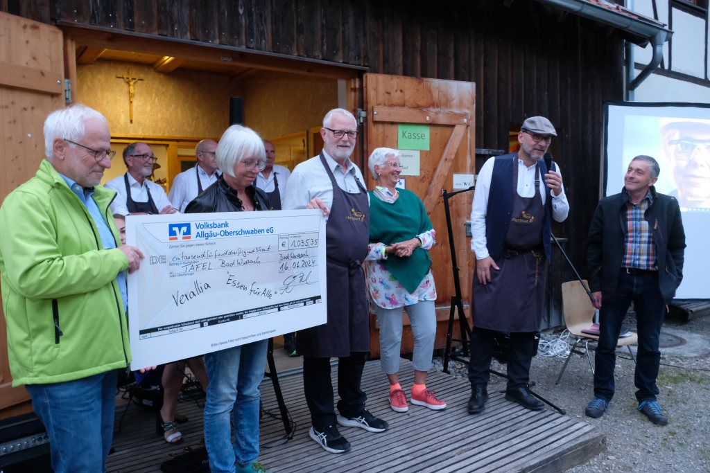 Bad Wurzach – Im Rahmen des „Brot und Wein“-Events beim Torfmuseum konnte die Aktion „Essen für alle“ wieder einen Scheck an die Bad Wurzacher Tafel überreichen, den diese sehr gut gebrauchen kann.