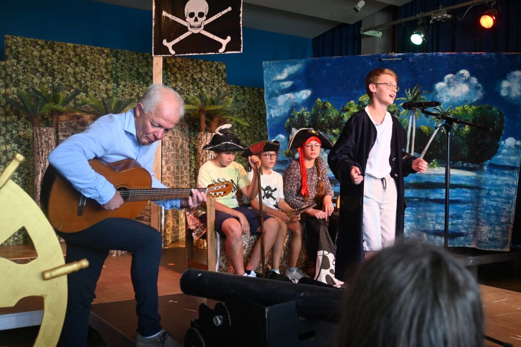 Bad Waldsee – Wer schon lange keine Schule mehr besuchte und dann unverhofft einem Schulmusical beiwohnt, stellt fest, dass die Schule doch ein ganz besonderer Ort ist. Die Schüler der Klassen fünf und sechs, gerade mal zwischen zehn und zwölf Jahren jung, brachten eine tolle musikalische und schauspielerische Leistung auf „die Bretter, die die Welt bedeuten“. Und das war das Besondere an vergangenen Dienstagabend (18.6.): Die Jungen und Mädchen sind noch soweit von dieser unserer Erwachsenen-Welt entfernt. Ihre Schule ist ein Ort der Geborgenheit. Ein Ort des Ausprobierens, des langsam in die Welt Heineinwachsens. Vor allem, wenn sie von zwei Lehrern wie Thomas Volkwein und Ernst Greinacher angeleitet werden.