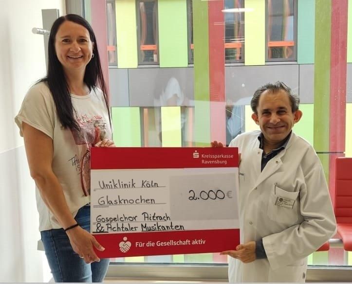 Achtaler Musikanten und Gospelchor Aitrach übergaben Spende an die Uniklinik Köln