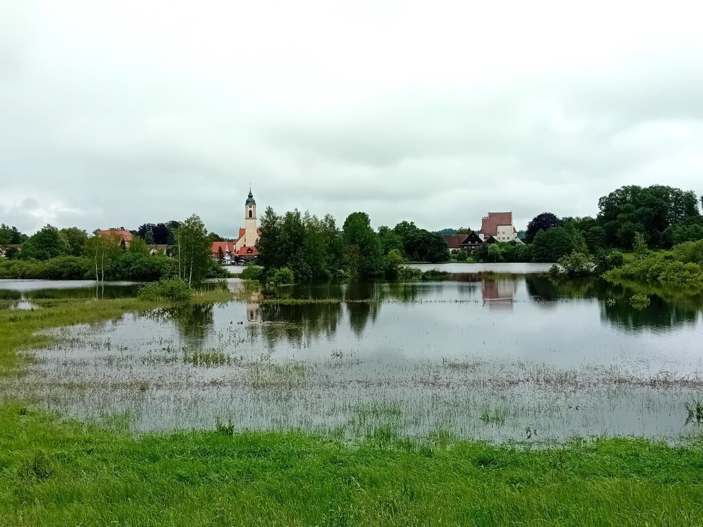 Kißlegg – Das letzte Mal hatte es im Kißleggischen vor genau 30 Jahren, 1994, ein ähnlich hohes, jedoch etwas kleineres Hochwasser an der Wolfegger Ach gegeben. Der Autor erinnert sich noch sehr lebhaft an seine Kindheit in Rempertshofen und die Überschwemmungen unterhalb der Ortschaft östlich und westlich der Wolfegger Ach (lokal auch Moosbach genannt), die dort aus dem Gründlenried strömt. Es hatte damals etwas weniger Wasser, wie beim diesjährigen Hochwasser. Trotzdem konnte man in den Überschwemmungsflächen baden gehen, was der Autor mit seinen Geschwistern tat.