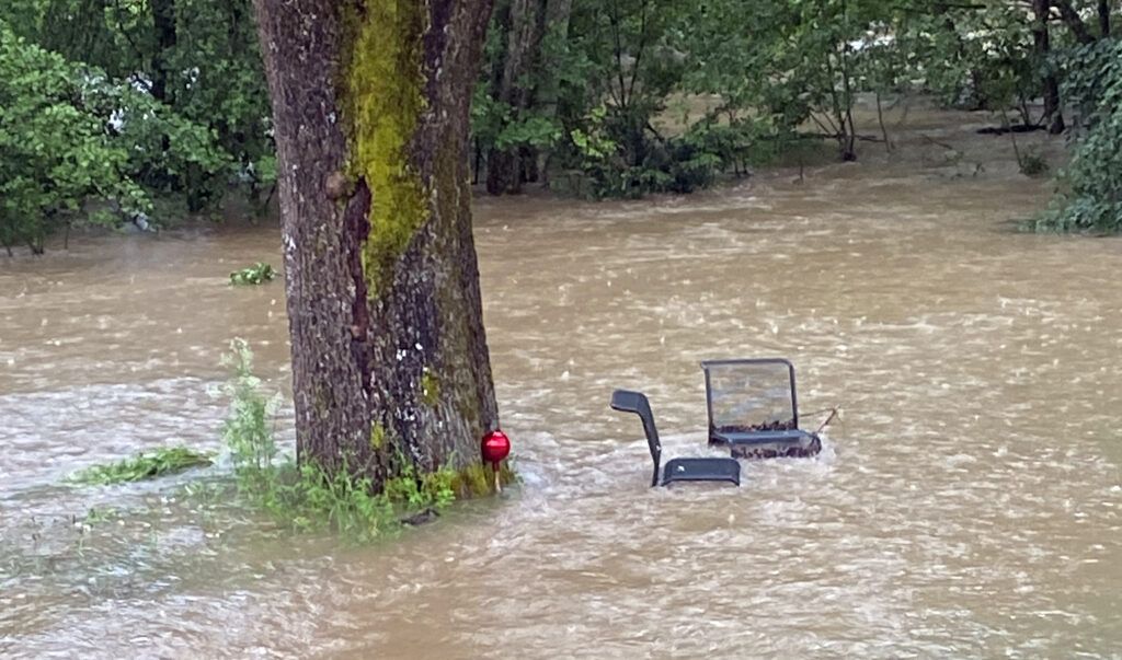 Rotis – Julian Aicher, Reporter der Bildschirmzeitung, wohnt am Wasser. In der Nacht von Donnerstag auf Freitag hat er zusammen mit seinem Bruder und dessen Söhnen und weiteren Helfern gegen das Wasser gekämpft. Fünf Stunden waren sie im Einsatz, um Treibholz an den Staufallen wegzuschaffen. Es packten an: Hermann Biedenbach, dessen Freundin Anita, Florian Aicher, Professor Lion Hirth, Marvin Hirth, Christine Abele-Aicher und Julian Aicher. Aichers Stauwehr samt anderen Bestandtteilen der Wasserkraftanlage Rotismühle (einschließlich Uferdämme) hat bisher gehalten. Am gestrigen 31. Mai sammelte sich im Niederschlags-Messbecher zwischen 7.00 und 19.20 Uhr 40 Liter. Seither bis heute (1.6.) morgen 4.30 Uhr: weitere 50 Liter. Also in gut einem Tag 90 Liter. Nachstehend Eindrücke von Julian Aicher und seiner Frau Christine Abele-Aicher in Wort und Bild: