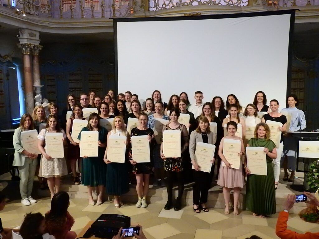 Bad Schussenried – Feierliche Stimmung herrschte am 14. Mai bei der Übergabe der Meisterbriefe im Beruf Hauswirtschaft im Bibliotheksaal des Klosters in Bad Schussenried. Insgesamt 45 Hauswirtschafterinnen und Hauswirtschaftern konnte Abteilungspräsidentin Anita Schmitt zum Meistertitel in ihrem Berufsstand gratulieren. Aus dem Verbreitungsgebiet der Bildschirmzeitung ist eine frischgebackene Meisterin dabei: Karolin Steinel aus Aulendorf.