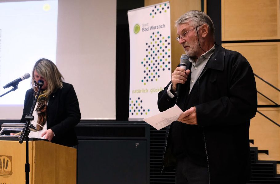 Bad Wurzach – Im Anschluss an die Präsentationen, mit denen die Verwaltung das Projekt „Naturerlebnis- und Beobachtungsturm im Ried“ vorgestellt hatte, hatten die zahlreichen Bürger/innen bei der Einwohnerversammlung am Mittwochabend im Kursaal Gelegenheit, Fragen zum Projekt an die Verwaltung, den Architekten und den Gutachter zu richten.