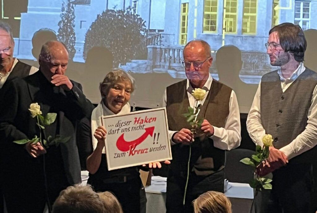 Bad Waldsee – Das „seenema“ Stadtkino in Bad Waldsee platze aus allen Nähten, als am Donnerstagabend, 25. April, das Spielerteam Katharina El Masri, Klaus Schulz, Moritz Herz, Hans Ehinger, Karl Birkle und Veronika Degler in der szenischen Lesung „Geheimplan gegen Deutschland“ ein Treffen Rechtsradikaler in einem Potsdamer Hotel vom vergangenen November nachstellte, von dem niemand erfahren sollte.