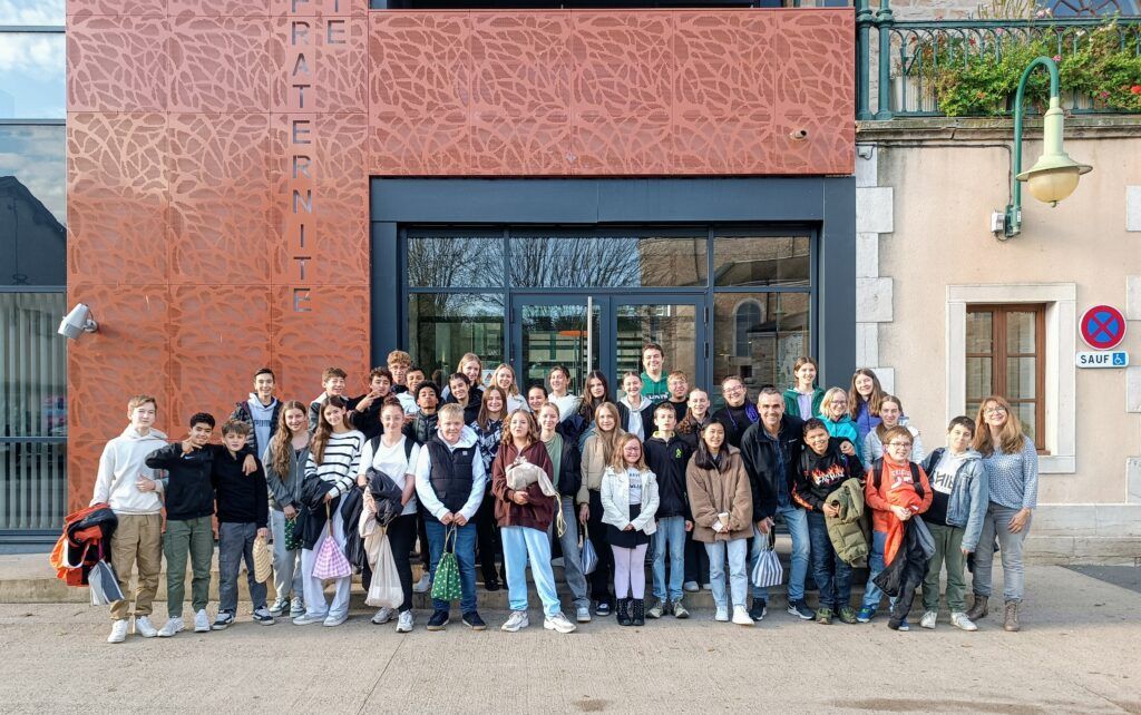 Bad Waldsee – Bienvenue à Feillens! Mit selbstgebastelten Fahnen und Banderolen wurden die deutschen Schüler und Schülerinnen der EBS in Bad Waldsee von ihren AustauschschülerInnen im Oktober bei ihrer Ankunft vor dem Collège freudig empfangen.
