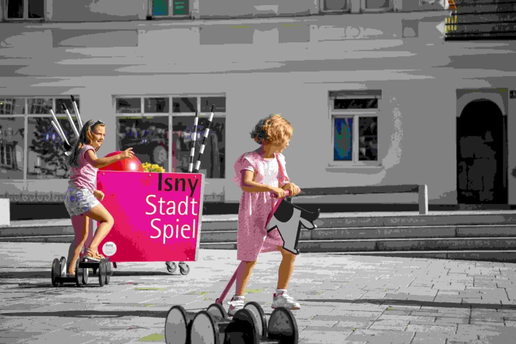 Isny – Pedalos, Stelzen, Hüpfbälle und Steckenkühe – sie waren wohl die Highlights der Kinder, die in diesem Sommer über den Isnyer Marktplatz tobten. Das Isny Stadtspiel sorgte schon an den warmen Tagen für Leben und lautes Lachen in Isnys Mitte. Mit neuem Spielzeug soll das auch im Winter so bleiben.