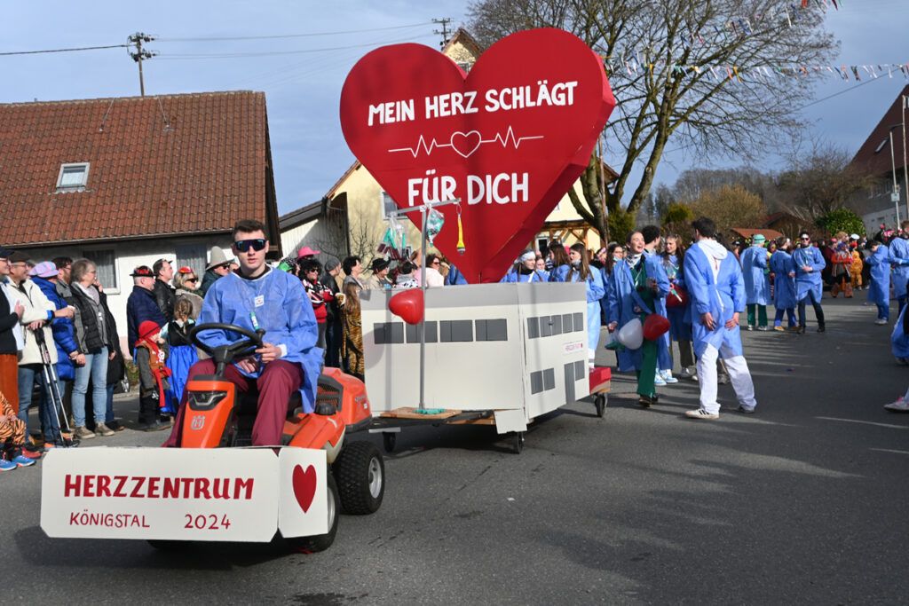 Mitttelurbach – Das Motto „60 Jahre Umzug im Königstal“ hat die Königstäler wieder mal zu Höchstleistungen animiert. Was da an Phantasie und liebevoll gestalteten Verkleidungen und Masken durchs Königstal defilierte, lässt manch Große Kreisstadt vor Neid erblassen. Nur ein Wermutstropfen: Zunftmeister Gere Frick konnte nicht mitspringen. Er musste den Umzug vom Rentnerbänkle aus anschauen, weil er grade schlecht zu Fuß ist. Unser Reporter Erre Linder ist mit Fahrrad und Kamera nach Urbach hinausgestrampelt und hat einen Sack voll Bilder heimgebracht. Schaut in unsere Bilder-Galerie: