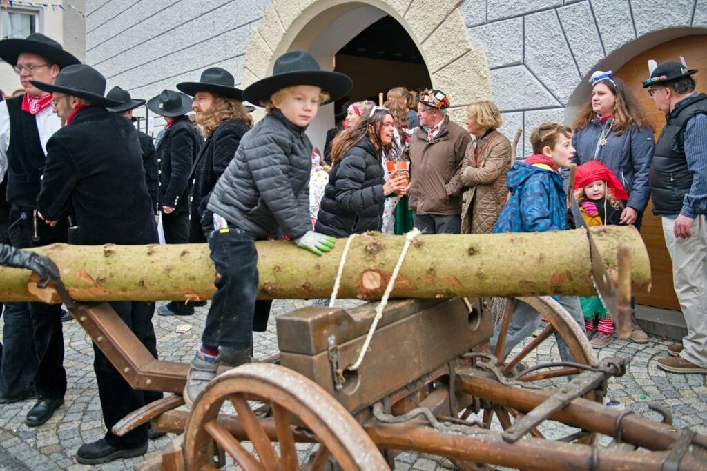 Bad Waldsee – Geometer und Zimmerleute des Jungelferrats haben den Narrenbaum am Morgen des Gumpigen mit vereinten Kräften auf die Hochstatt gebracht und dort unter lautstarken „Hau-Ruck, Hau-Ruck“-Rufen aufgestellt. Auf dem Weg zum Aufstellungsort gab es so manche kleine Spottrede zu hören. Unser Reporter Josef Hanss war dabei.